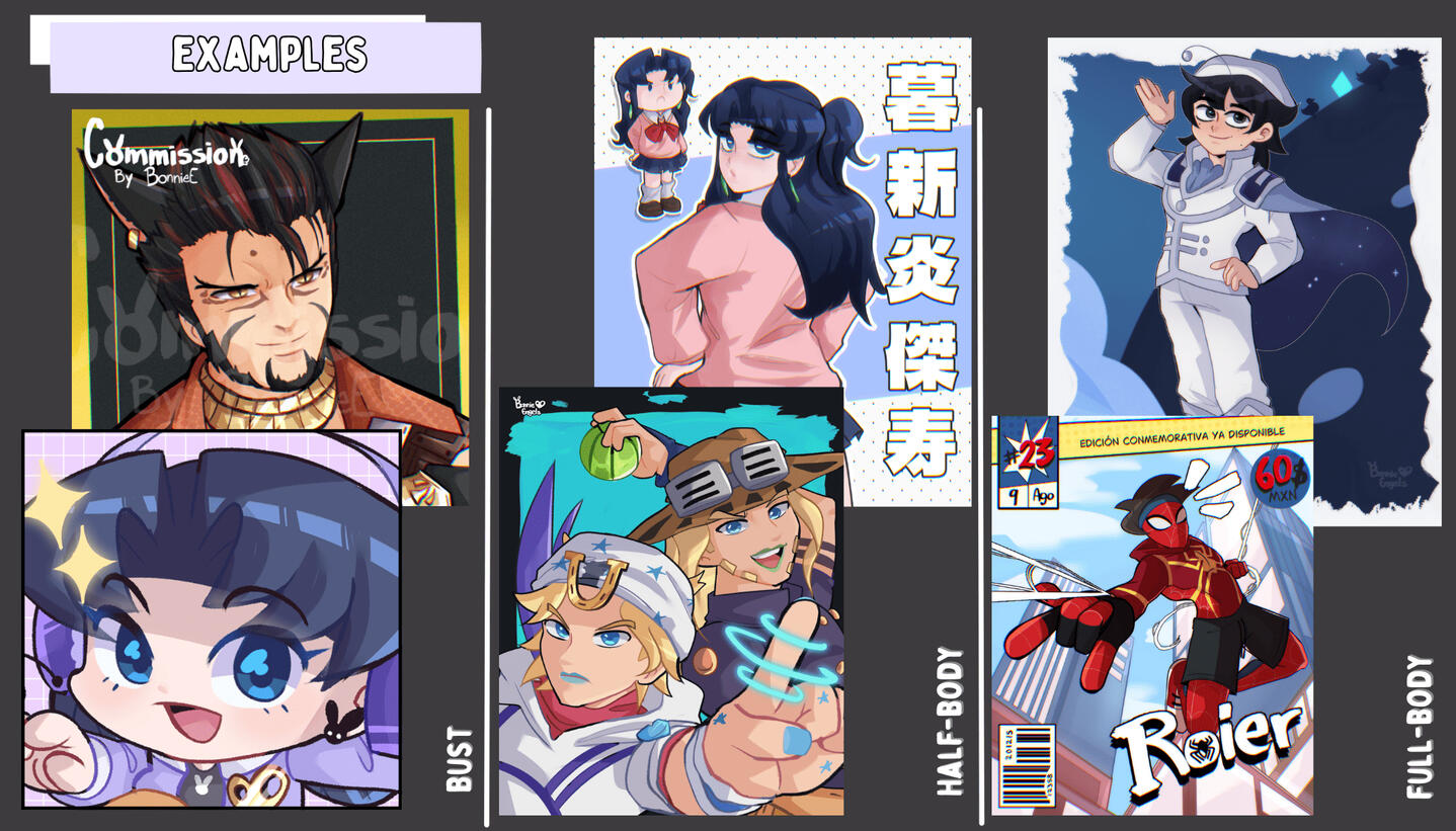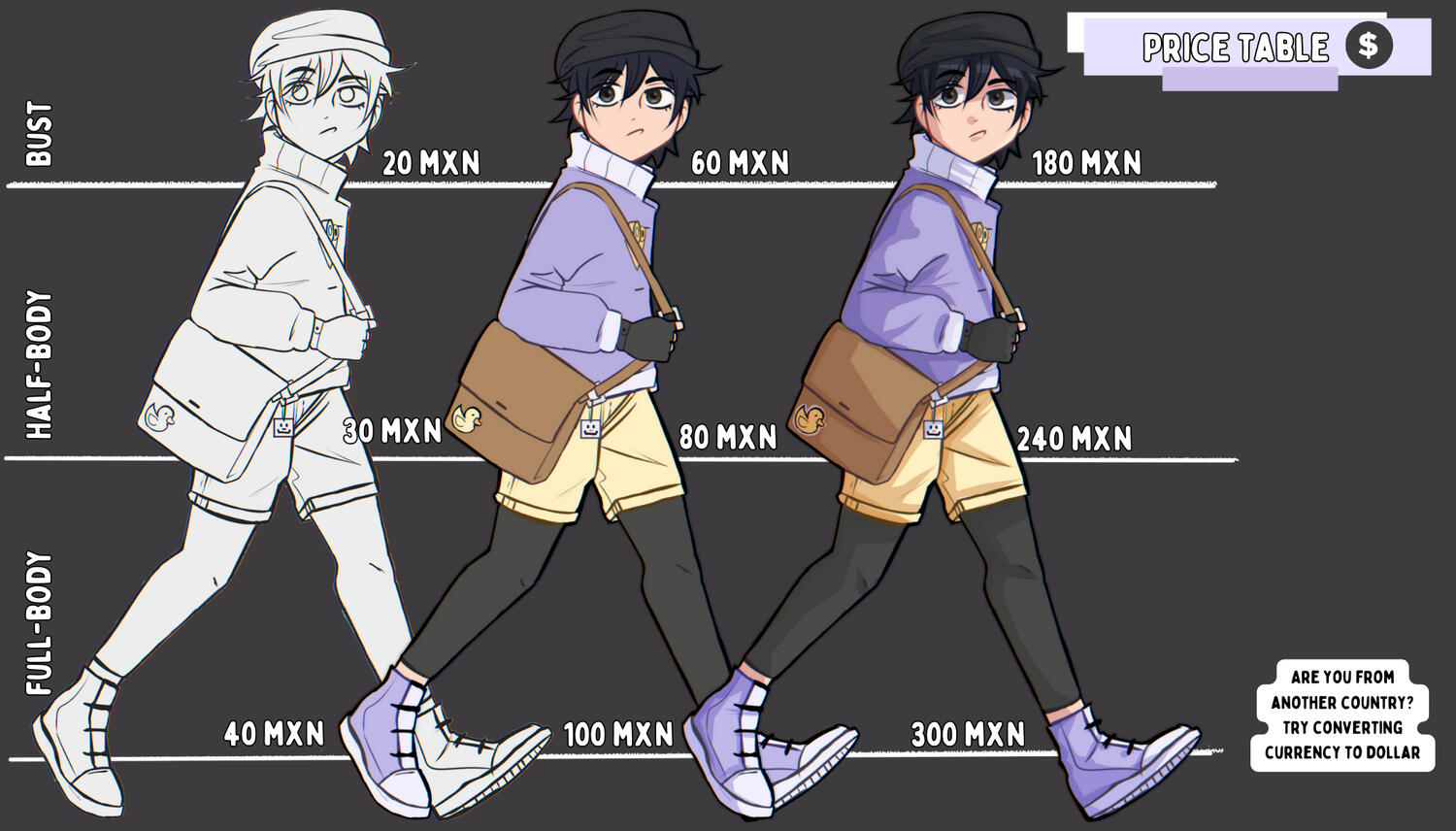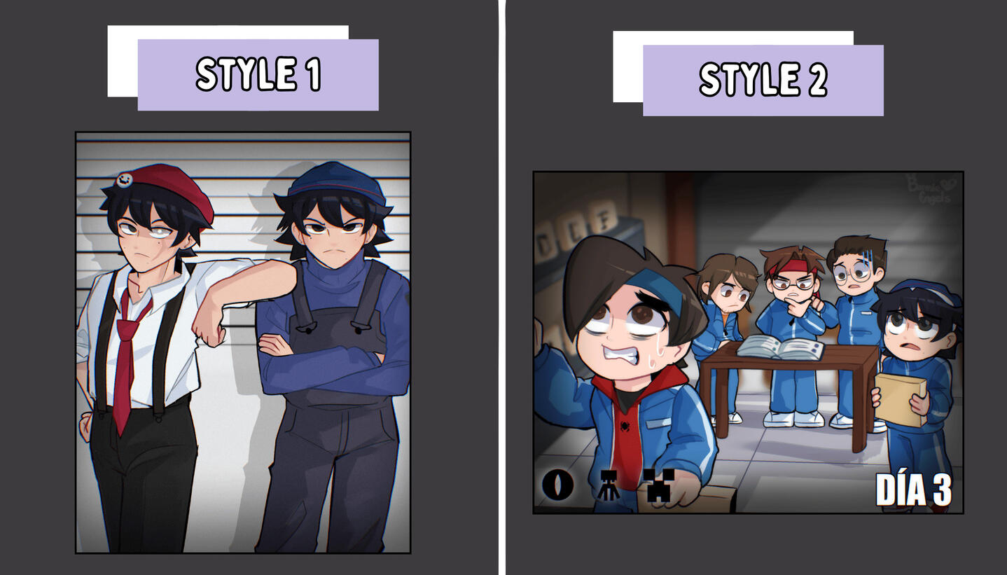 Puedo dibujar para ti en dos estilos de dibujo, el primero mantiene proporciones más “normales” y el segundo se asemeja a lo que sería un chibi.